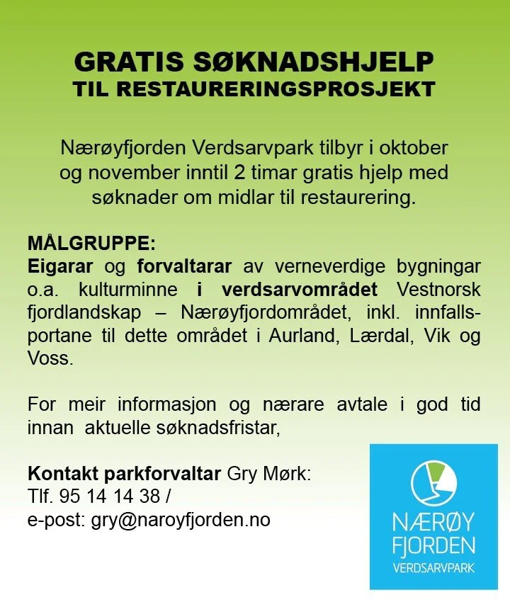 Gro Nesse-Bremer 04.10.2016 Gro Nesse-Bremer 04.10.2016 Søknadsfristar for å søkja midlar om restaurering! Les mer